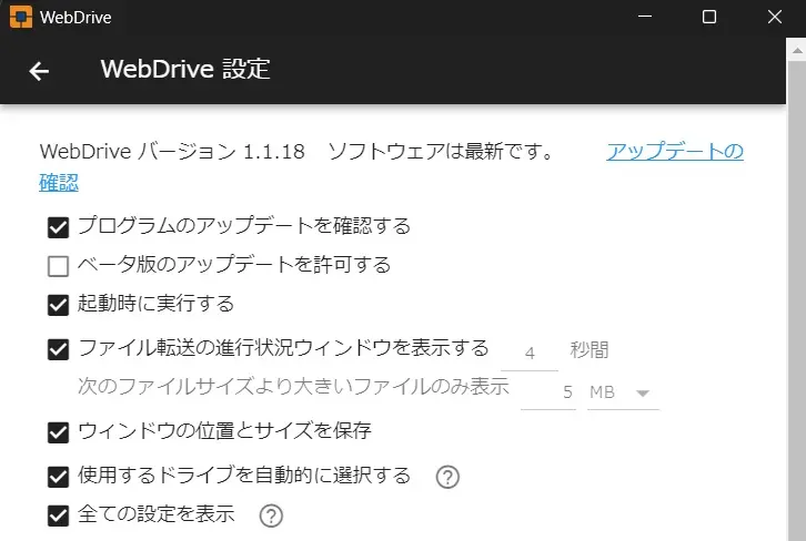 - 本設定はサイト単位ではなく、WebDrive全体に適用される設定です。