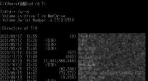 WebDriveがマウントするドライブは、エクスプローラーやコマンドプロンプトからはWindowsのネットワークドライブとして認識されます。Windows OS標準のコマンドプロンプトはUNIX系コマンドであるlsを標準では認識しません。