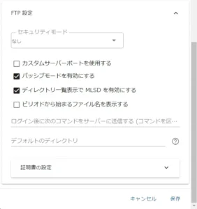 - ユーザー名:FTPサーバーにログインするユーザーアカウントを入力