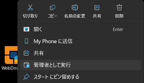 使用中のアプリケーションを全て終了して、WebDrive-Setup.exe を右クリック [管理者として実行] をクリック