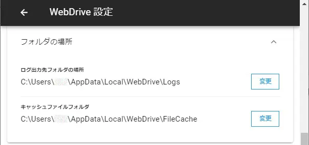 • 初期は AppData\Local\WebDrive 内のフォルダ―が指定されています。