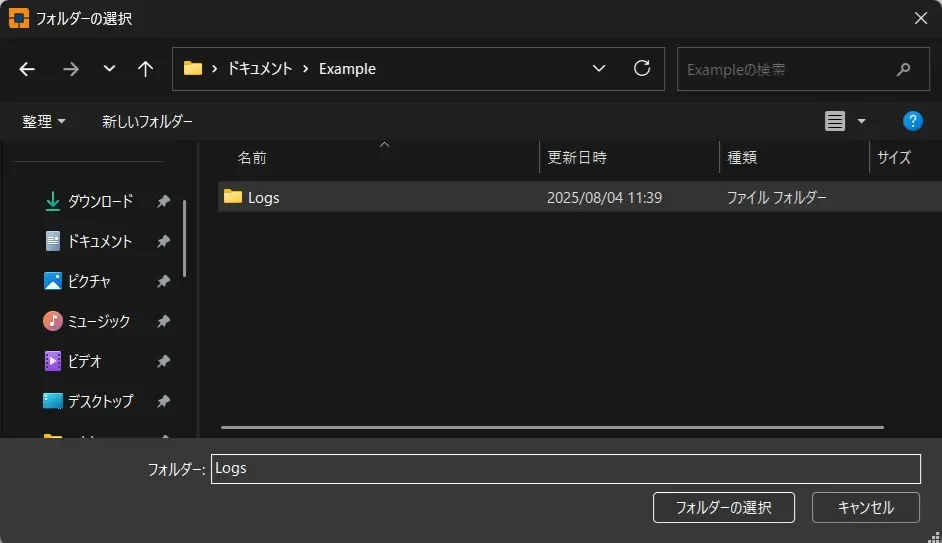 目的の場所に移動してフォルダ―を指定し、[フォルダ―の選択]をクリック