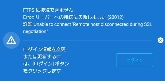 Remote host disconnected during SSL negotiation.は、クライアントとサーバー間でTLSプロトコルバージョンの不一致が発生している場合に主に表示されます。