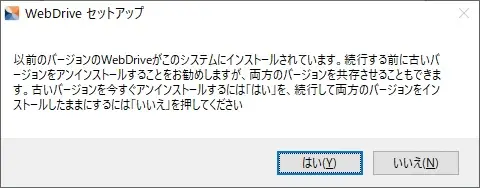 以前のバージョンの WebDrive の処置の確認画面で、[はい] か [いいえ] を選択
